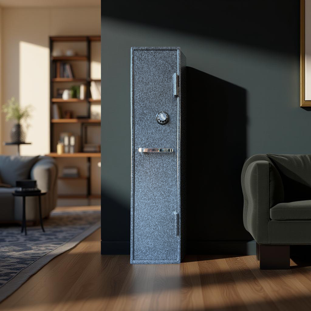 ∙ View the scaled interior size chart for non fire lined safes specifically for the model you are interested in. Fire lined safes have one less row of guns exposed.