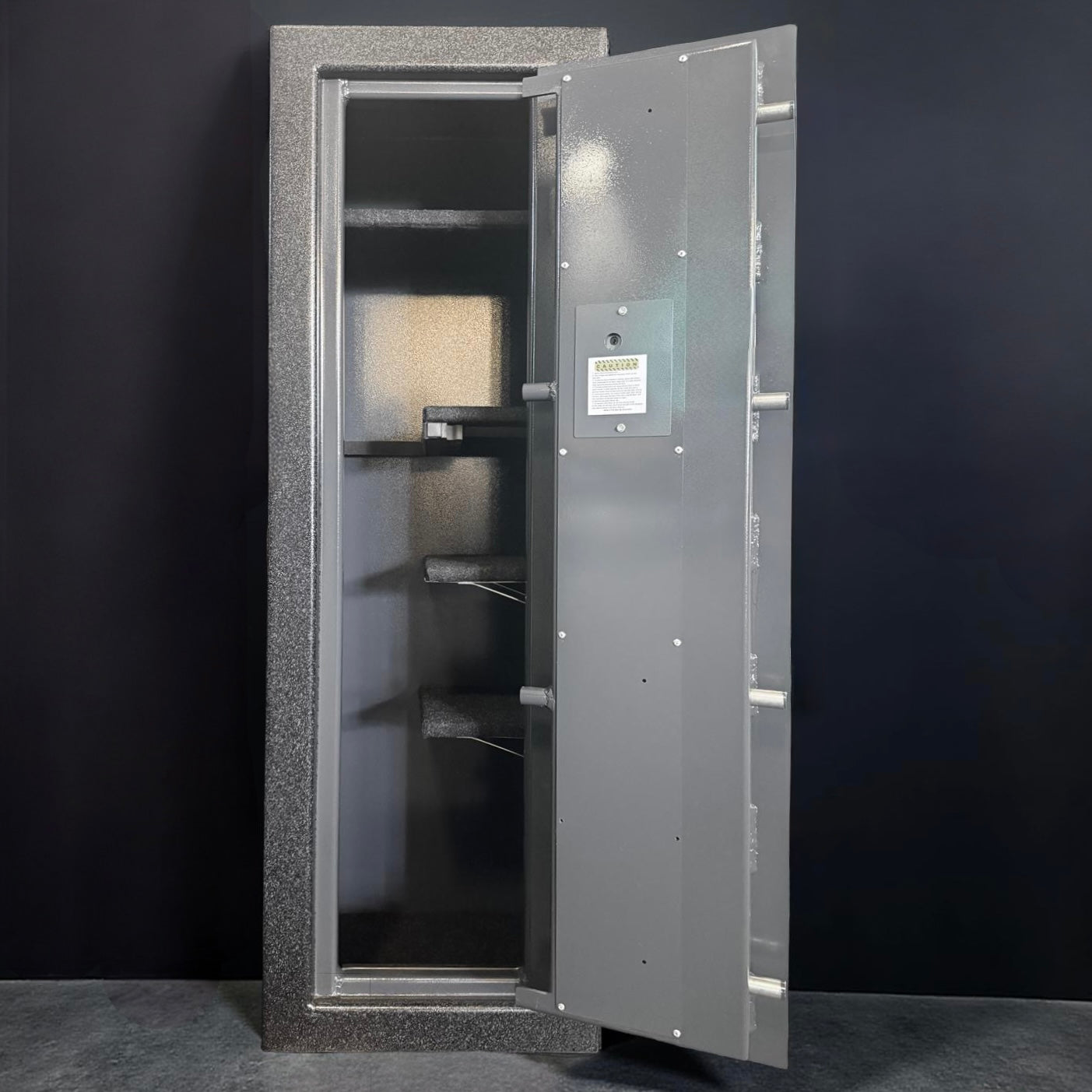 I am beyond impressed with this safe. I started out knowing nothing about safes and I was considering buying a cheap one from a local store. After doing some research, Sturdy Safe seemed to be by far the most safe for the money. If you want fancy leatherette interiors then maybe consider something else but if you want to maximize the amount of steel and protection then this is it. The door gap is tight enough I cannot fit a butter knife in there, much less a crow bar. Sturdy had the safe delivered to me in the exact time frame they said they would and it works perfectly. I would say 9-10 long guns could fit comfortably inside with the rifle rods, but you could cram more in if you needed to. Another plus to Sturdy is you actually get Alyssa (from the YouTube videos) on the phone when you call, not some random customer service person that doesn’t care.