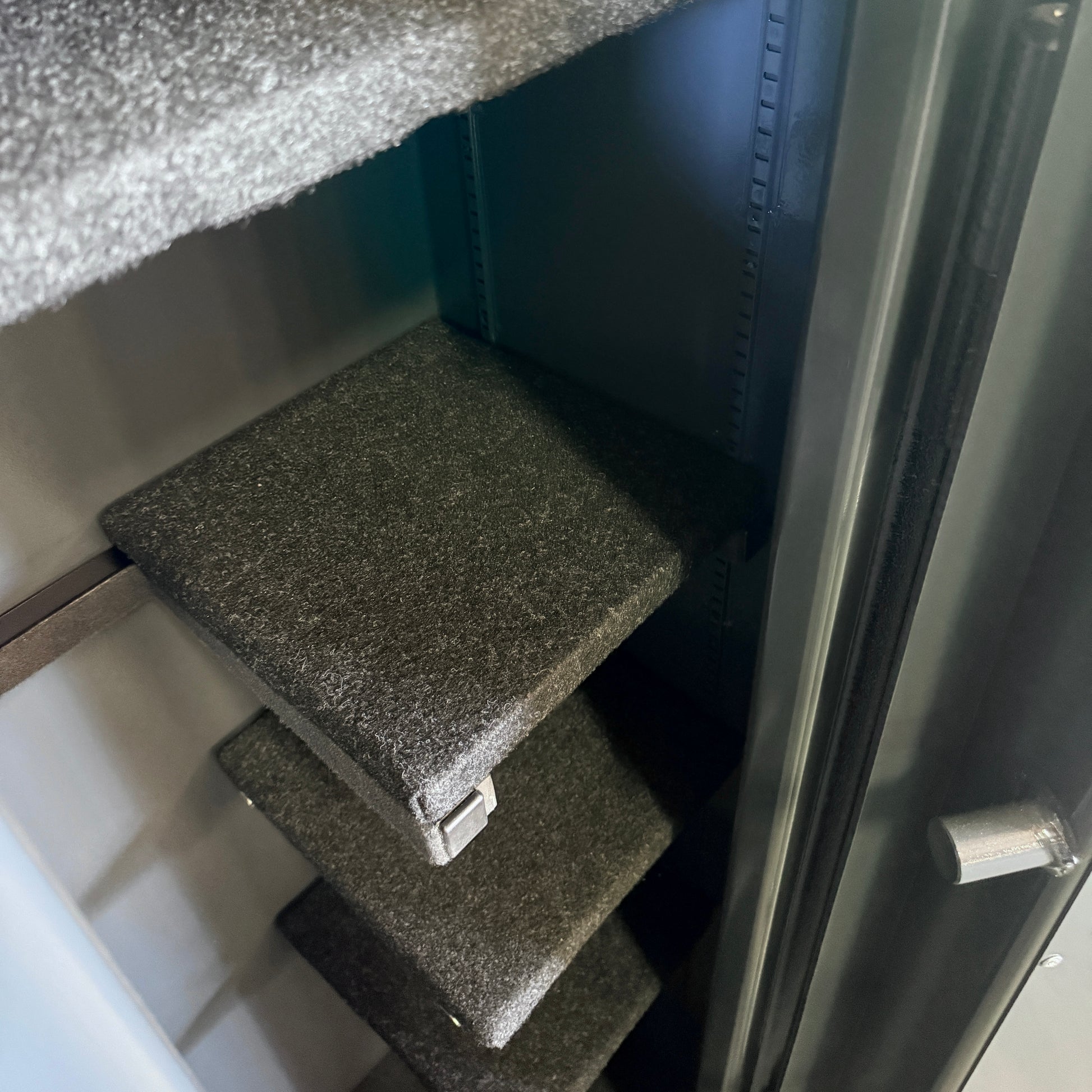 This interior is best for those who don't have many long guns and would like larger side shelves that carry more weight. We will call you for the best division. Comes with 1 gun rack, 3 side shelves and 1 top shelf (2 for 6ft tall safes). All shelves would carry 150 lbs.